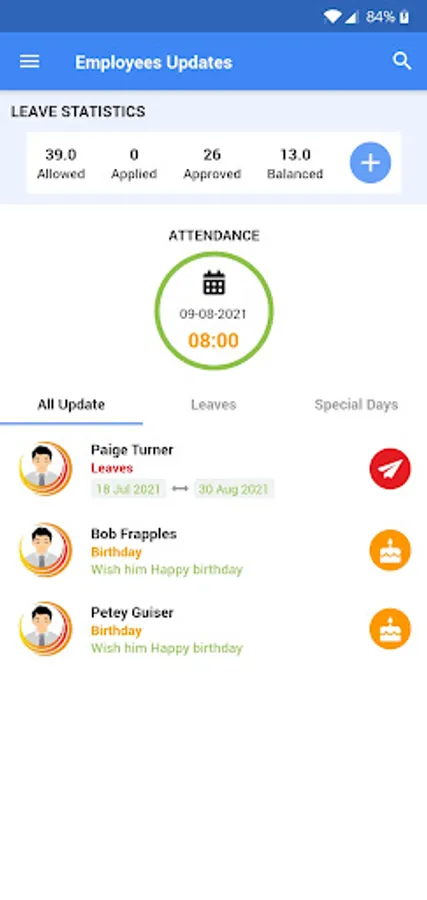 • Detail Calendar for employees on leave, events, birthdays, holidays