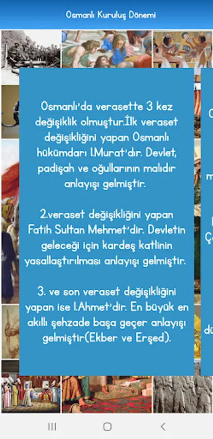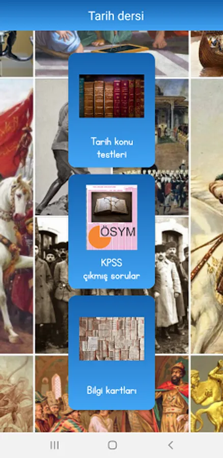 This application has been prepared for students and people who want to learn all history knowledge. Using this application that offers a fun interface, you can use KPSS License, Kpss Associate, TYT, AYT, LGS etc. you can prepare for exams. You can learn and repeat topics quickly with the flashcards containing practical information. You can test your knowledge by solving subject tests.