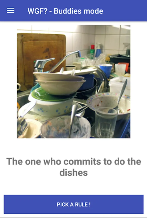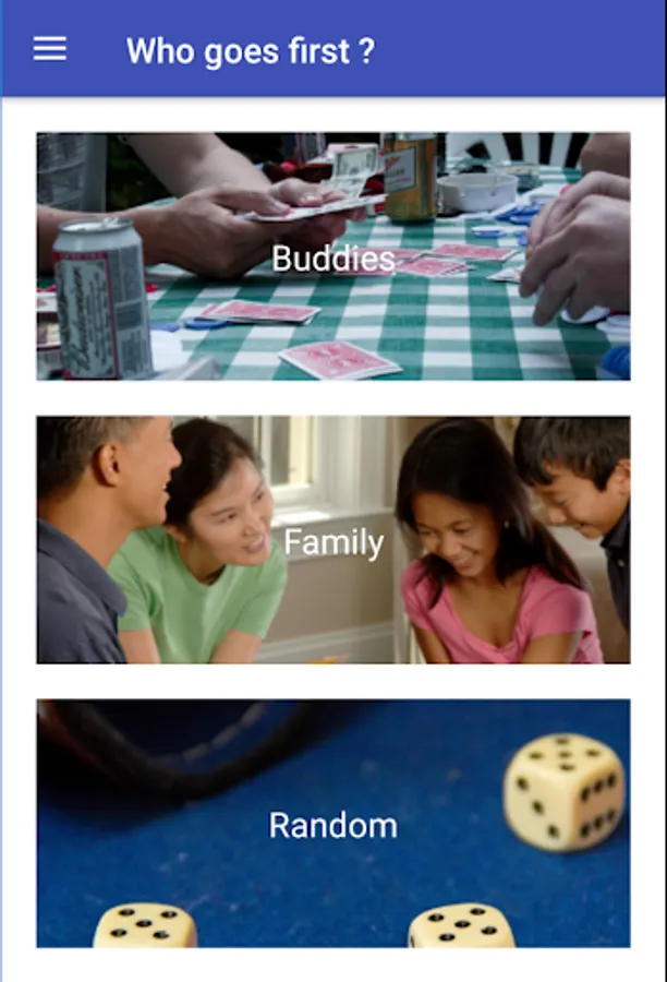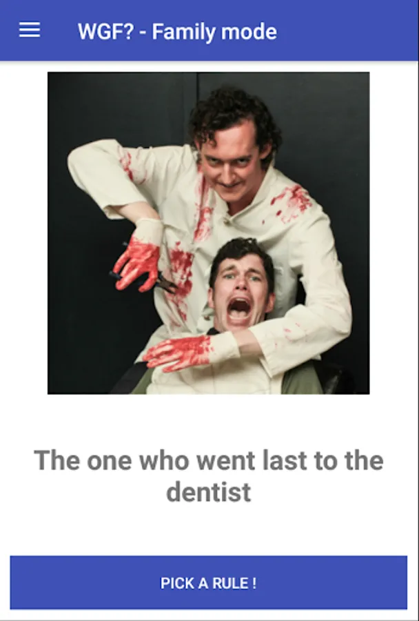 Tired of looking for a die to know who will play first on a tabletop game ? "Who goes first ?" is a fun way to pick the first player. Press the button and follow the randomly picked rule. Who's the tallest ? Who's the baldest ? Who will be brave enough to commit to do the dishes to be able to play first ?
