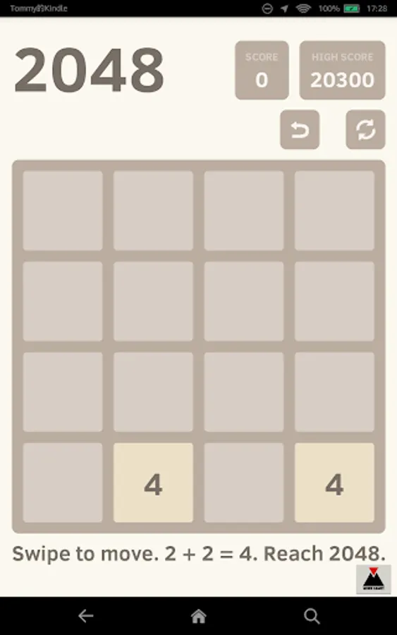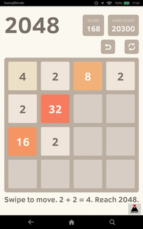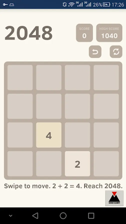 Swipe on the screen to move the number tile, and the tiles with same numbers will be merged into one. Try to get the tile 2048 and you wins!