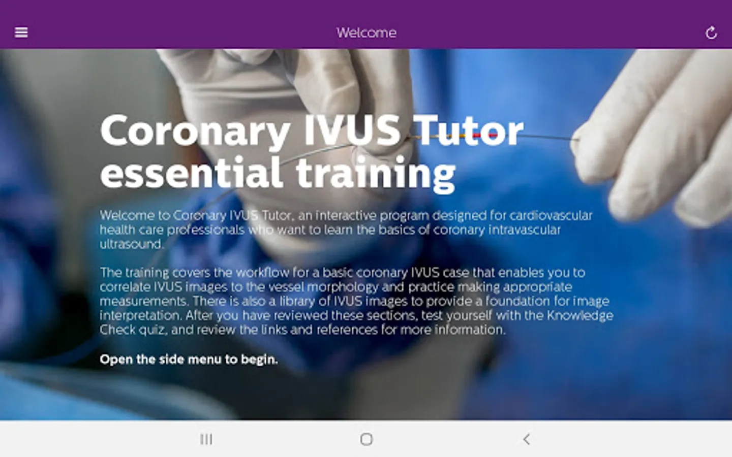 Welcome to Coronary IVUS Tutor app, an interactive program designed for cardiovascular health care professionals who want to learn the basics of coronary intravascular ultrasound.