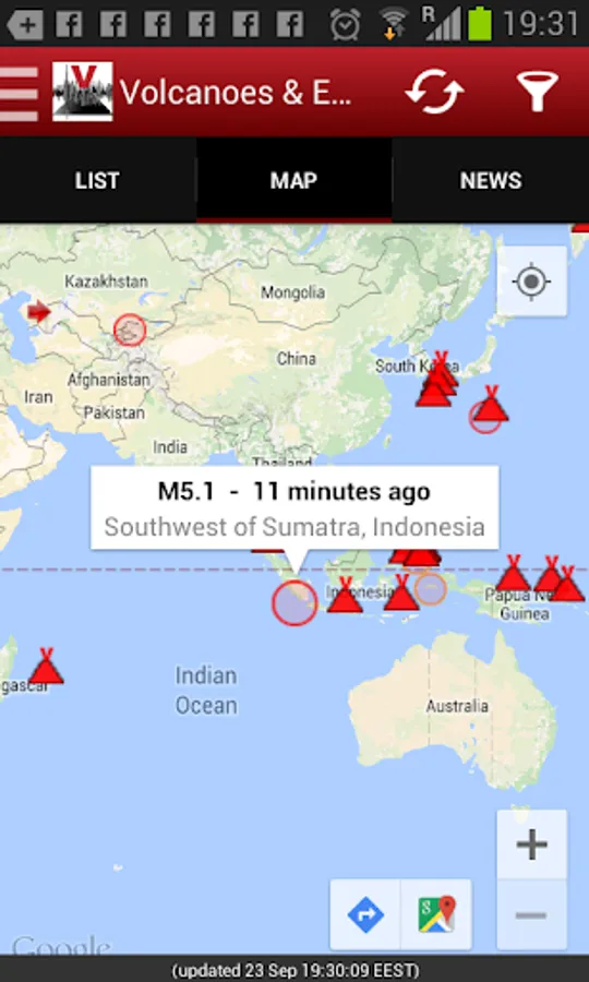 Volcanoes & Earthquakes shows the latest earthquakes worldwide or only quakes near you, as well as earthquake "I-felt-it" reports for earthquakes, in near real-time. It also shows active volcanoes on a map and as a list, along with volcano news from all the world.