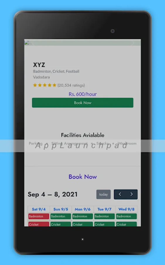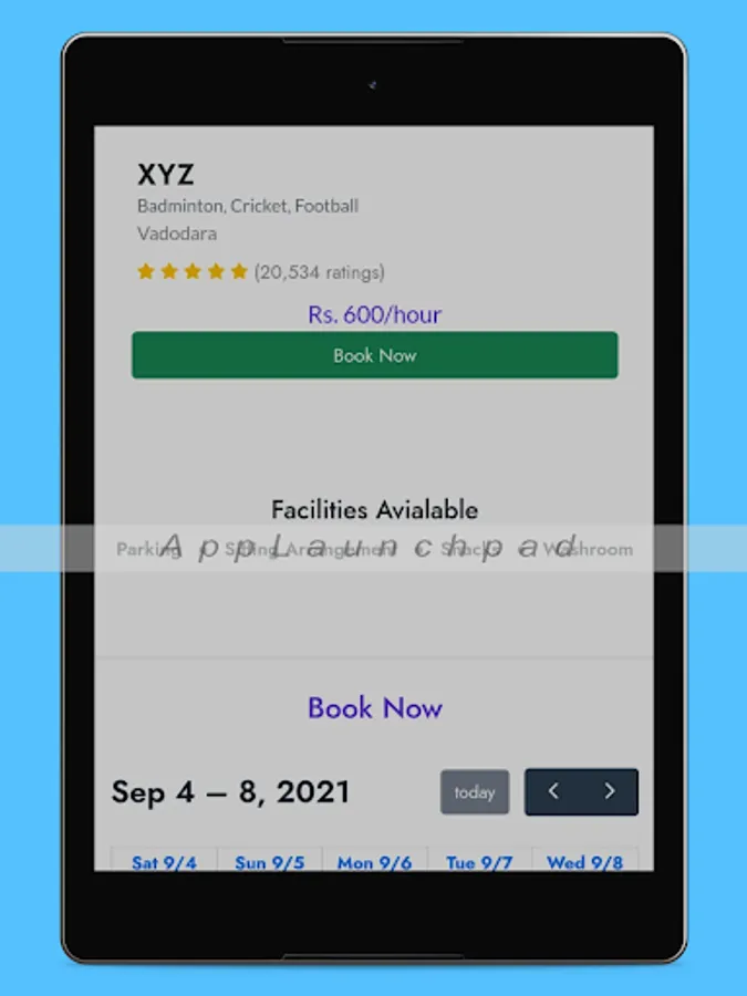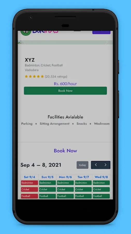 Simple and clean UI to find playarea of desired sport and at desired date and time.