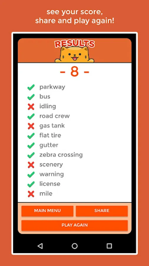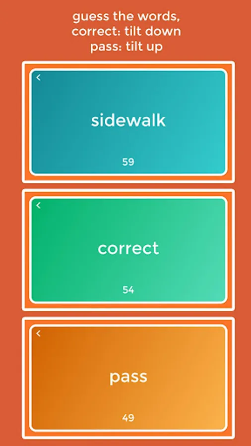 Turn the screen facing friends, flip the phone down when you guess it right, flip your phone up when you want to pass that word.