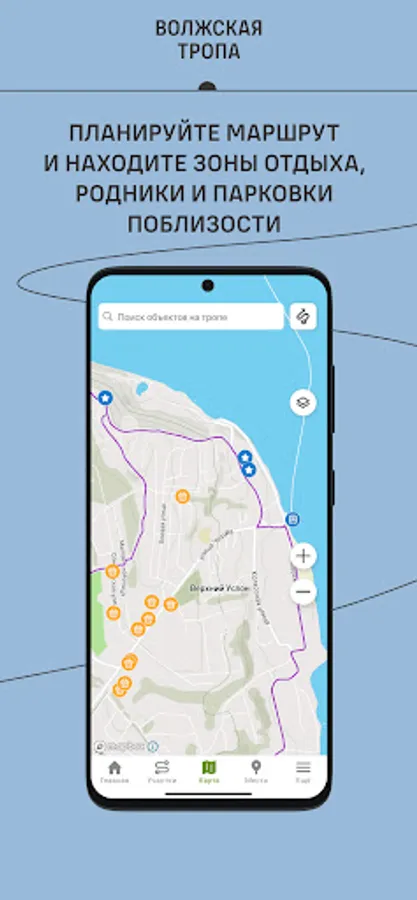 - Map. A highly accurate and informative map is able to keep you on the trail even in places with no internet at all. The map contains all the necessary infrastructure, services (shops, cafes), public transport stops, parking lots, railway and river stations.