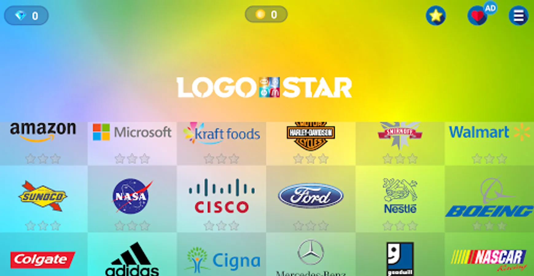 ★ Get scored after each logo to collect 7 stars to unlock new rounds of Easy/Medium/Hard logos to keep you entertained