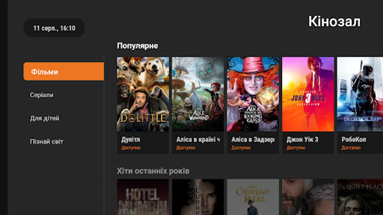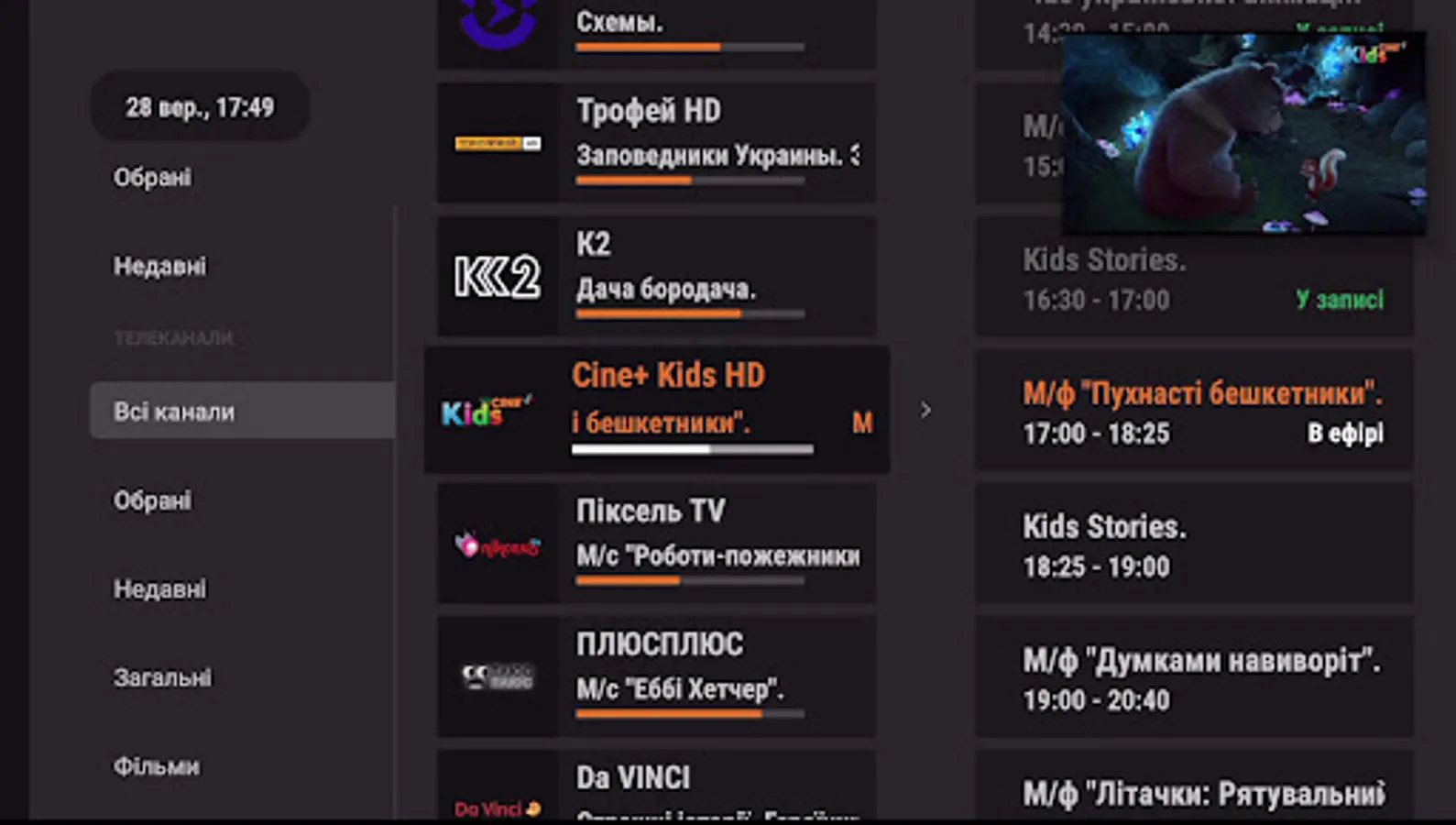 • Own Cine + channels, which have novelties of foreign and Ukrainian cinema and favorite hits of the past years.