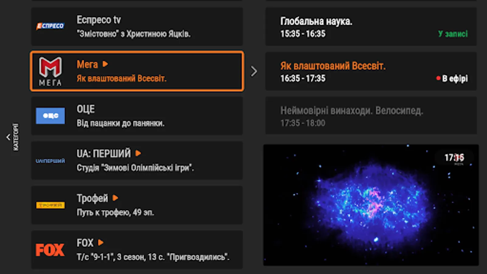 • 100+ of popular and thematic Ukrainian and international channels – cine, kids, educational, sports and news