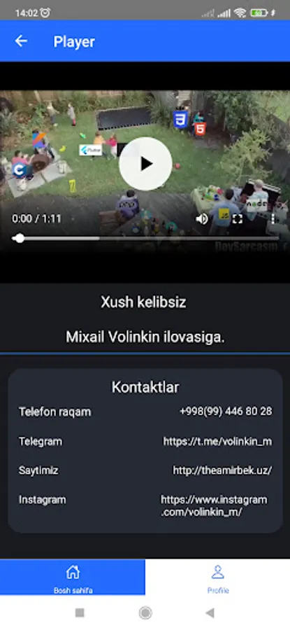 Men Mixail Volinkin shaxsiy ilovamni yaratdim va sizlar bilan tajribam bilan o`lashmoqchiman .
