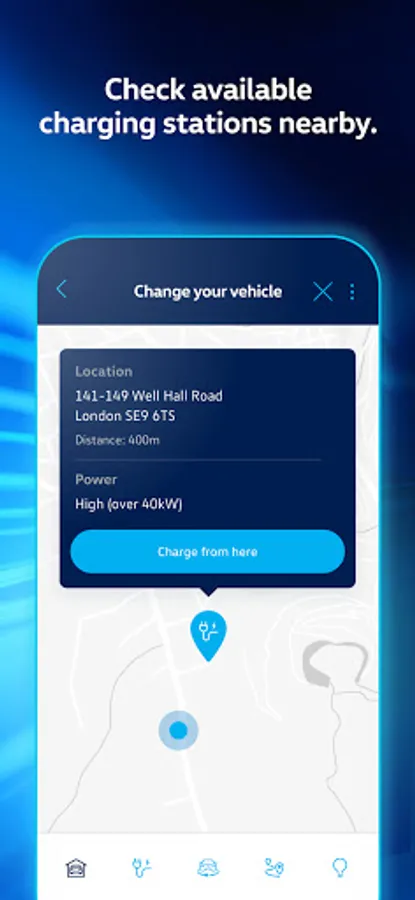 The nearest charging stations are also displayed, and a simulation gives insight on the charging times for a so-called EV (electric vehicle).