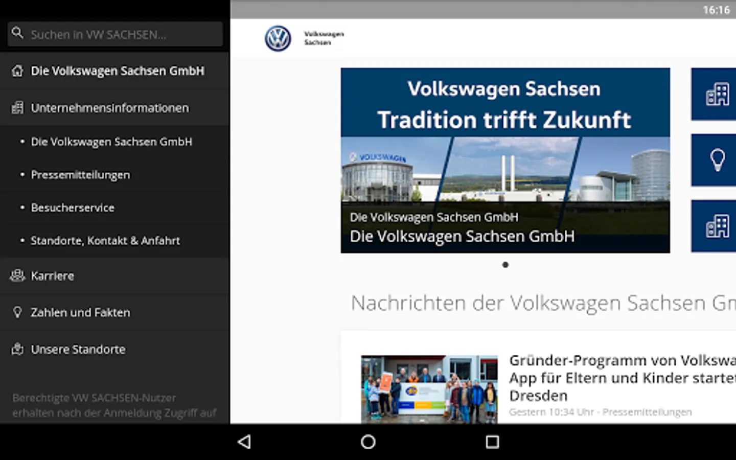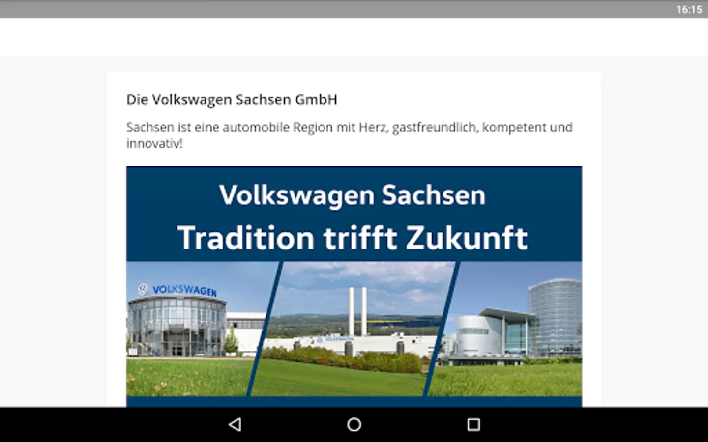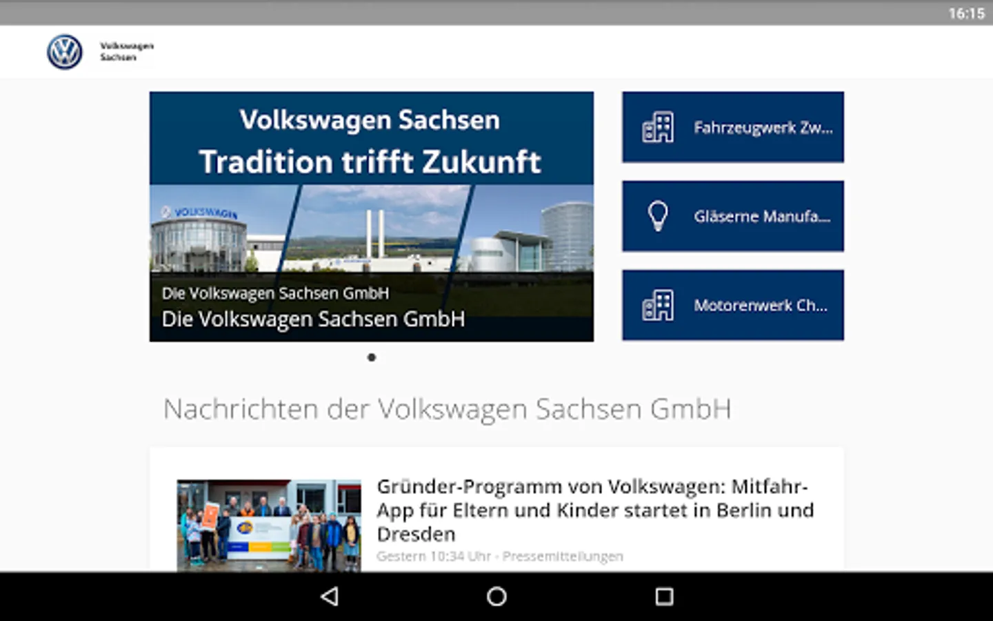 This app provides up-to-date information about Volkswagen Sachsen GmbH.