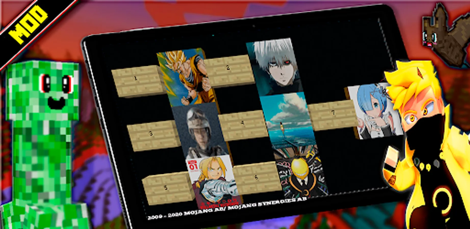 DISCLAIMER: "Ninja Anime Mod For MCPE" - is an unofficial application for Minecraft Pocket Edition. This application is not associated in any way with Mojang AB. Minecraft Name, Minecraft Mark and Minecraft Assets are all property of Mojang AB or their respectful owner. All rights reserved. In accordance with http://account.mojang.com/documents/brand_guidelines