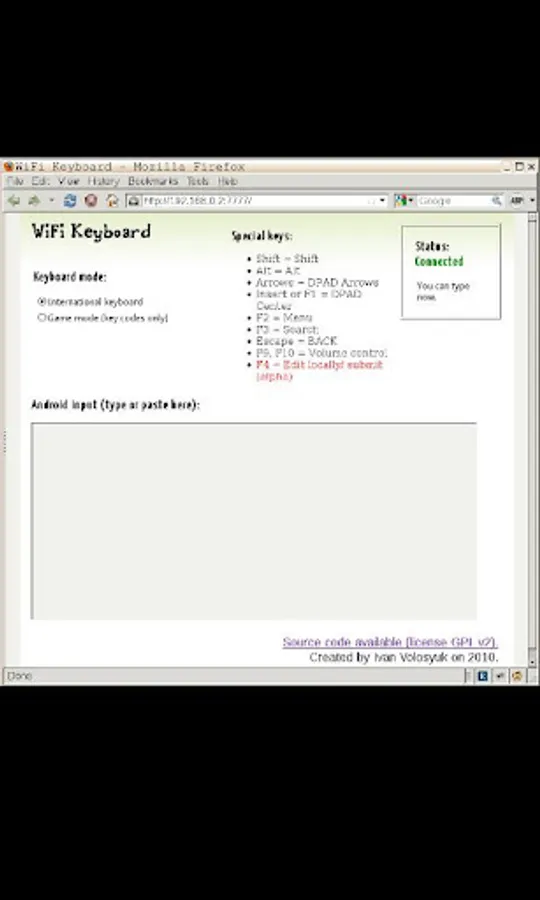 Keyboard for keyboard-less phones like Nexus One. Allow you to type on your phone using your computer's browser.