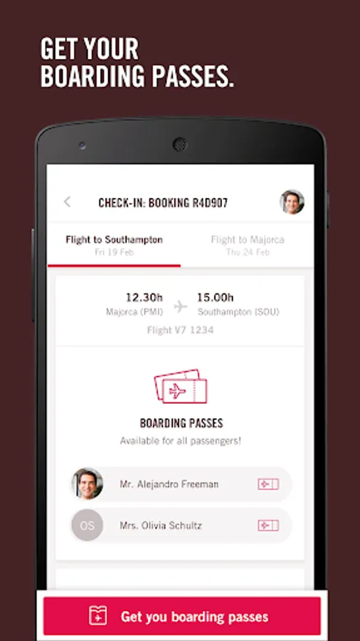 For greater convenience you can check in for your flights directly from your cell phone. Save printing your boarding pass and go straight to the departure gate. You can store your boarding passes straight into your Passbook or, if you prefer, you can download them conveniently on your mobile or tablet.