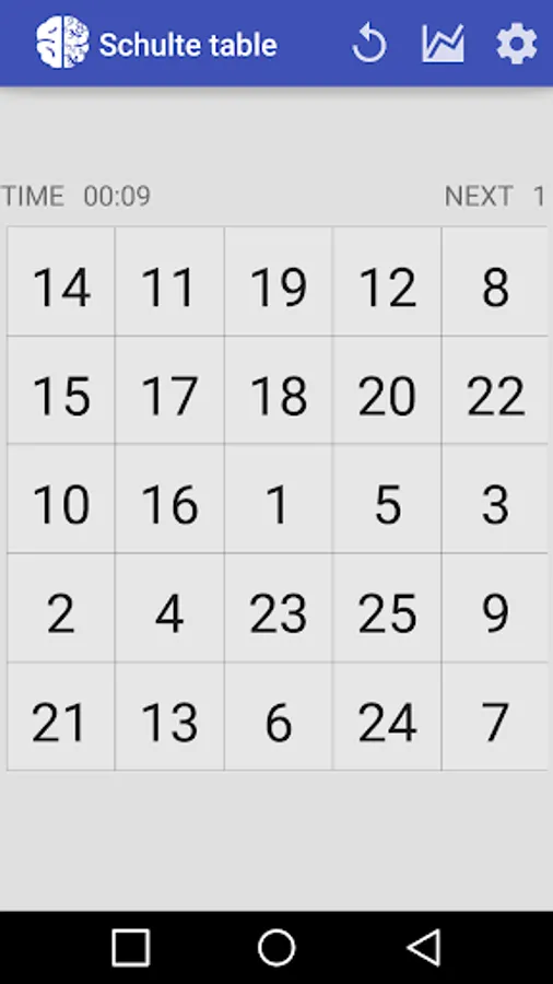 Schulte table also offer for "time" game mode, detail statistics of your improvement in various area.