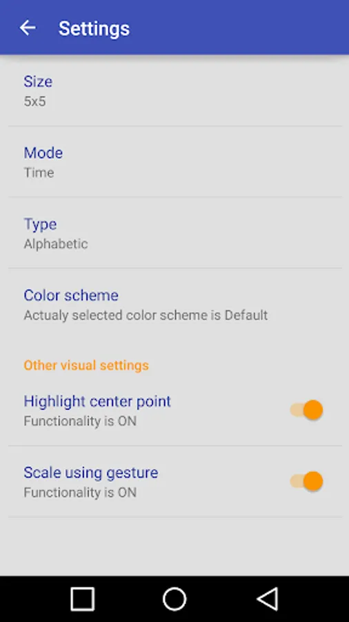 - Training - UNIQUE feature, start from size 1x1 and with each tap, table size increase up to max game size. Newly added cells are highlighted to allow better concentration on border of the table.