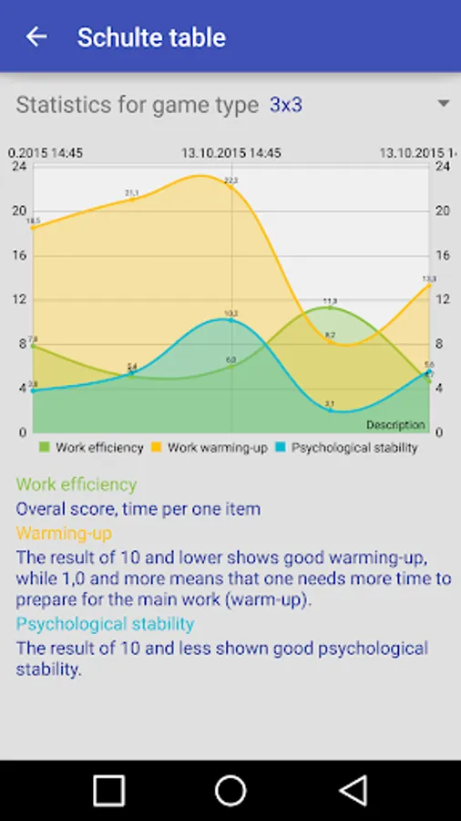 Schulte table also offer for "time" game mode, detail statistics of your improvement in various area.