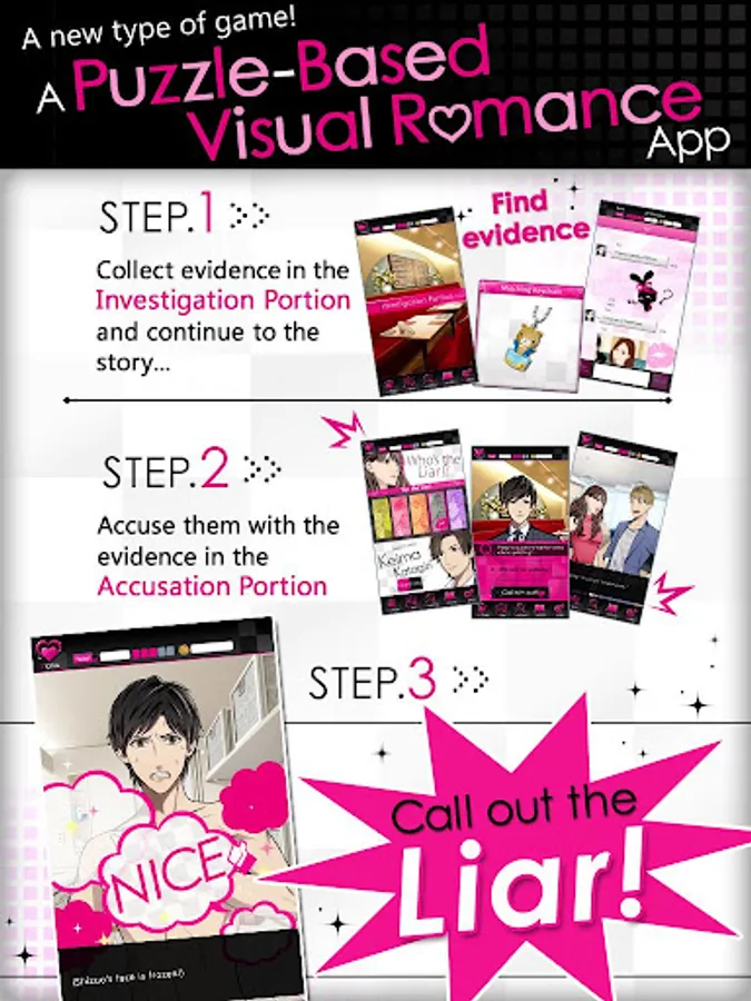 "Liar! Uncover the Truth" is a free-to-play novel-type romance app featuring exciting puzzle-based gameplay where YOU are the detective.