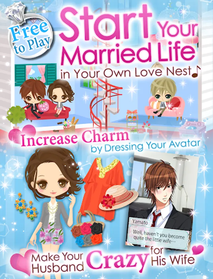 As your "Charm" increases, so will your new husband's infatuation with his bride! Use Gacha Points to get your interiors to decolate your house!