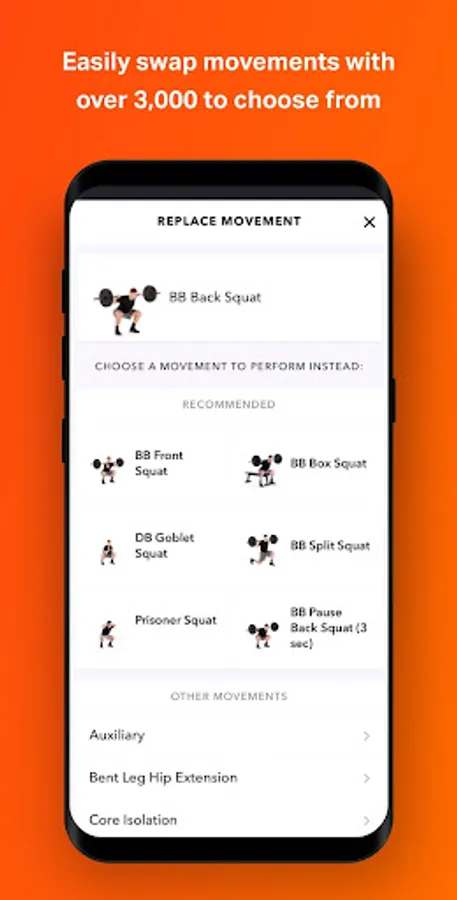 Flexibility — Customize your workouts with easy exercise swaps. Search our library of 3,000+ movements, each with HD video demonstrations and step-by-step instructions.