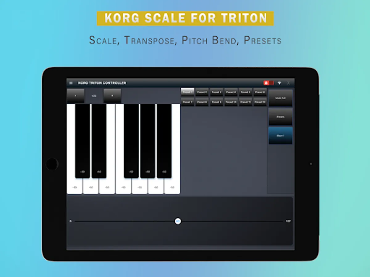 Scale Controller is a professional mobile applications that allows you to scale your KORG keyboardYou can control multiple compatible keybaords in the same time (you need OTG cable) via midi interface. This application allows you to memory your banks and presets.