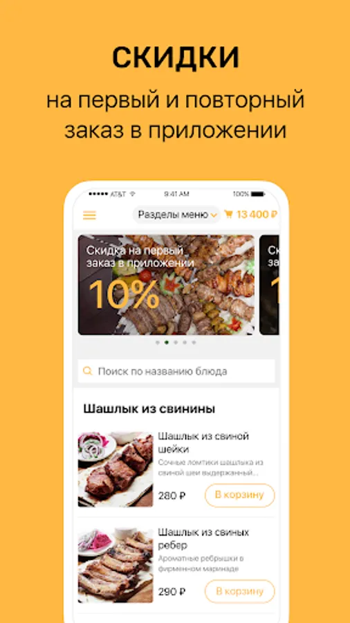 Install the application and order the delivery of delicious dishes of Caucasian cuisine from the restaurant "League of Shashlykov"!