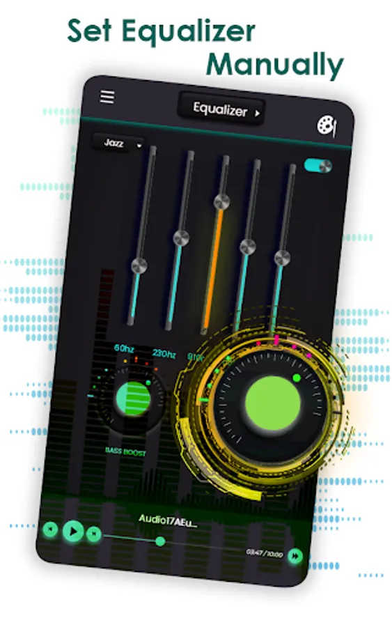 β Open the Bass Booster app and change sound level and frequency as you like.