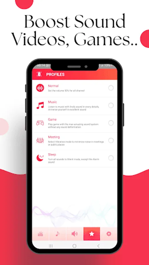 You can boost volume for all media in phone with free audio enhancer and sound amplifier tool. This app enhance the sound quality of your devices and listen to what you want. Turn up the volume and get the max with this sound amplifier 3D and speaker booster for android app.
