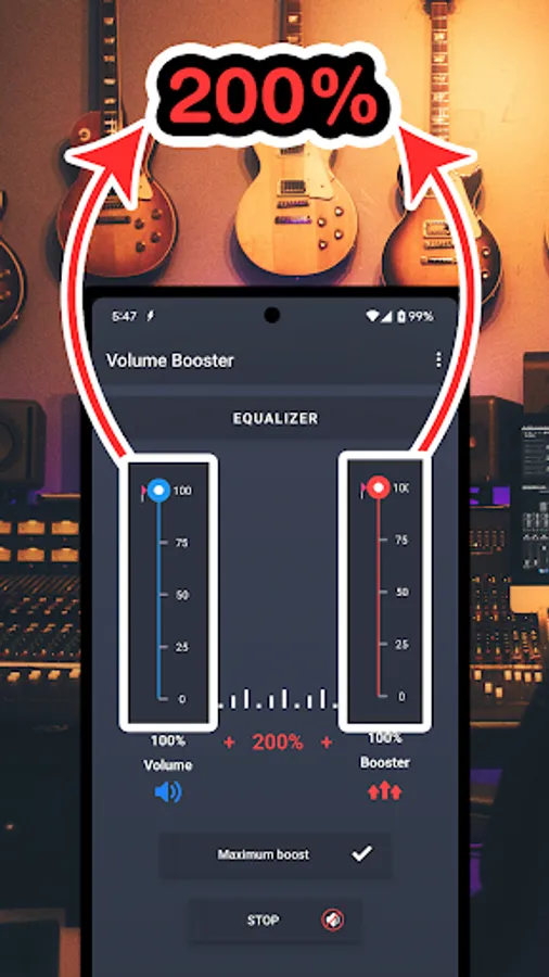 Welcome to the ultimate Volume booster app for Android, designed to enhance your mobile audio experience like never before! This powerful app boosts your mobile's volume by up to 200%, allowing you to enjoy your favorite music, videos, and podcasts at unprecedented levels of clarity and sound booster volume. With its advanced features and intuitive interface, this app is a good tool for anyone who wants to take their audio experience to the next level.