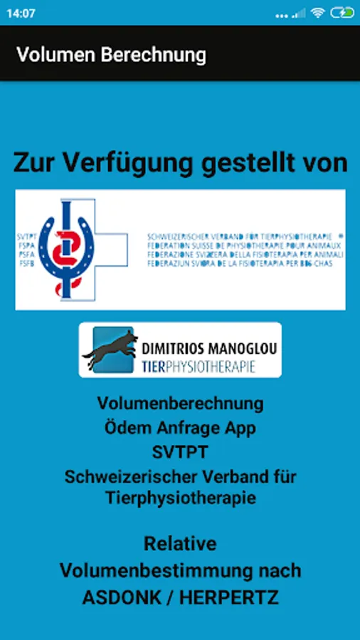 - Die App vergleicht das Volumen der ödematösen Seite prozentual mit dem Volumen der gesunden Seite. Dies wird als Resultat von der App ausgewiesen. Zur Reproduzierbarkeit der Resultate können einzelne Tiernamen und die Volumina gespeichert werden. Ein Export aus der App ist nicht möglich, aber mittels Printscreen können die Resultate extern weiterverarbeitet werden.
