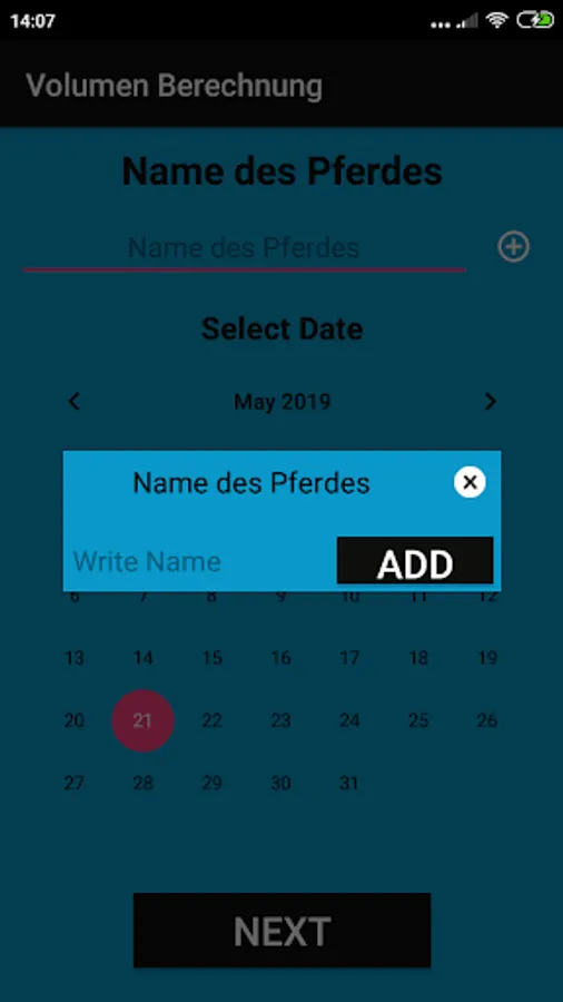 - Die Distanz beim stehenden Pferd vom Boden bis zur ersten Umfangmessung wird mit dem Zollstock bestimmt und in die App eingetragen.