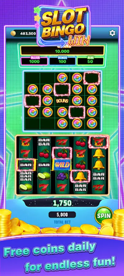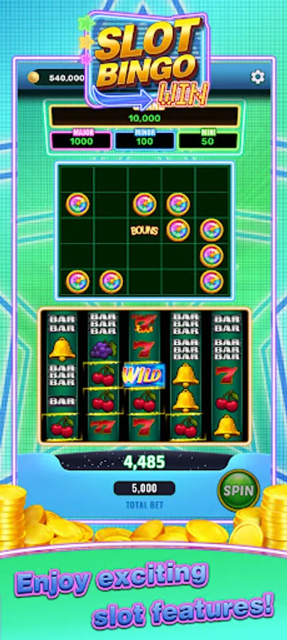 Get ready for an immersive experience in Slot Bingo Win! Spin the reels, match the symbols, and collect bingo patterns. When you achieve a bingo, you'll receive fantastic rewards and enjoy endless fun and excitement.