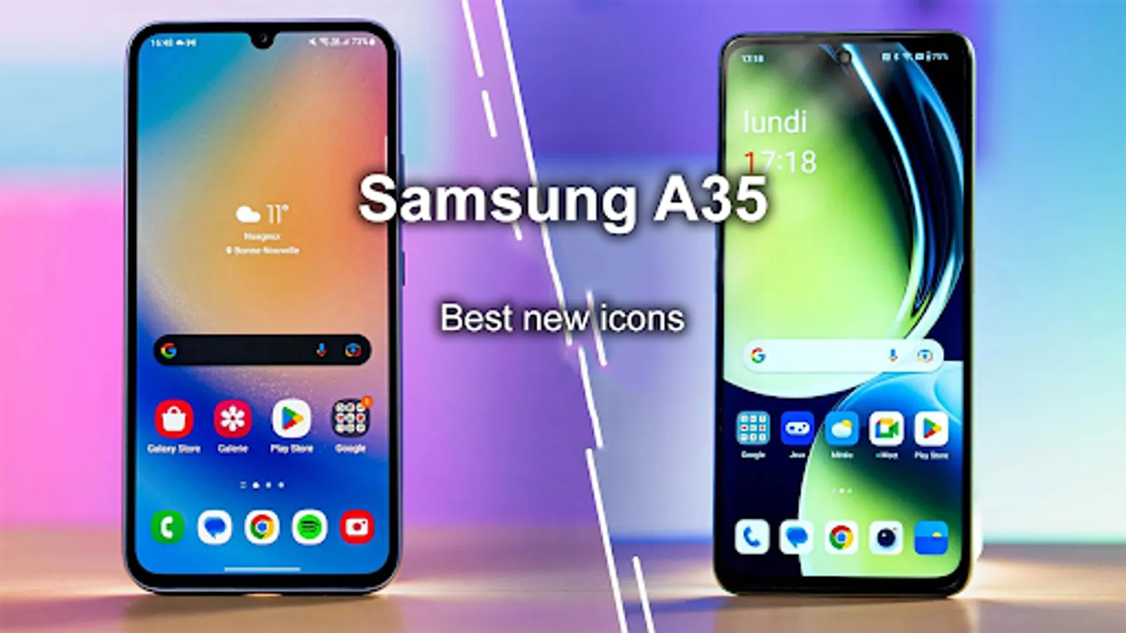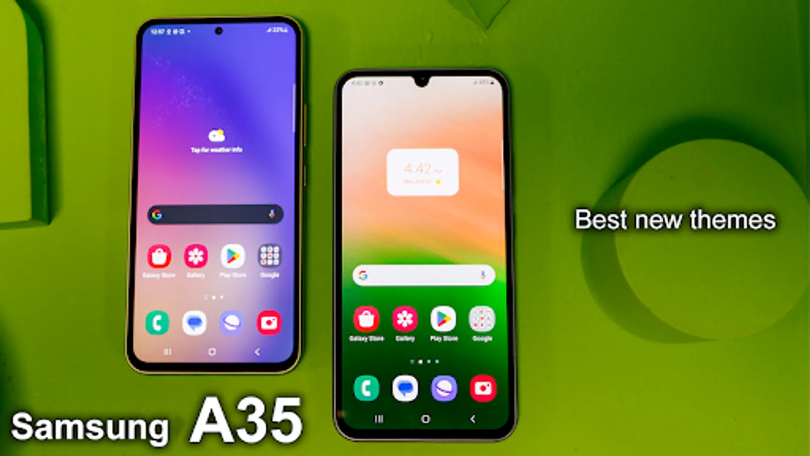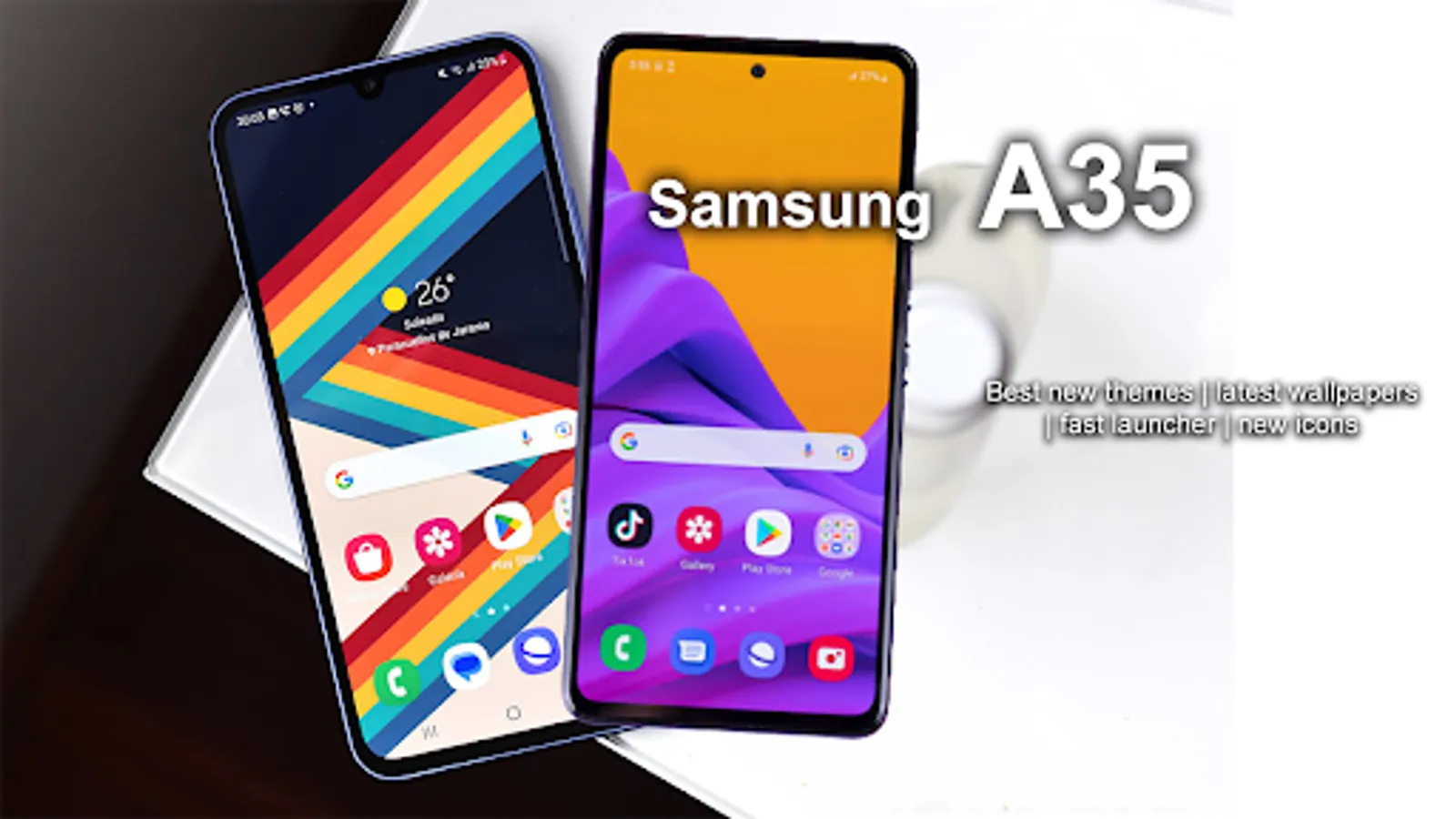 Theme for Samsung A35: Launcher is supported on most Android devices, including Samsung, OPPO , Huawei , Realme, Infinix, Xiaomi , OnePlus , Sony Xperia, HTC etcetera. Install it for your mobile with Samsung A35 look.
