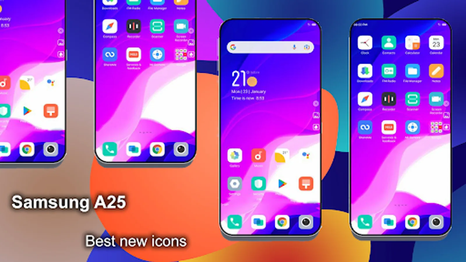Theme for Samsung A25: Launcher is supported on most Android devices, including Samsung, OPPO , Huawei , Realme, Infinix, Xiaomi , OnePlus , Sony Xperia, HTC etcetera. Install it for your mobile with Samsung A25 look.