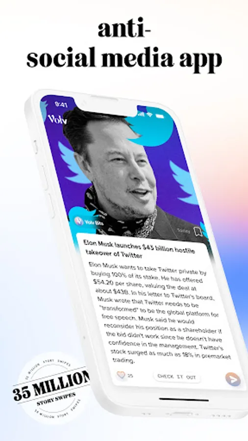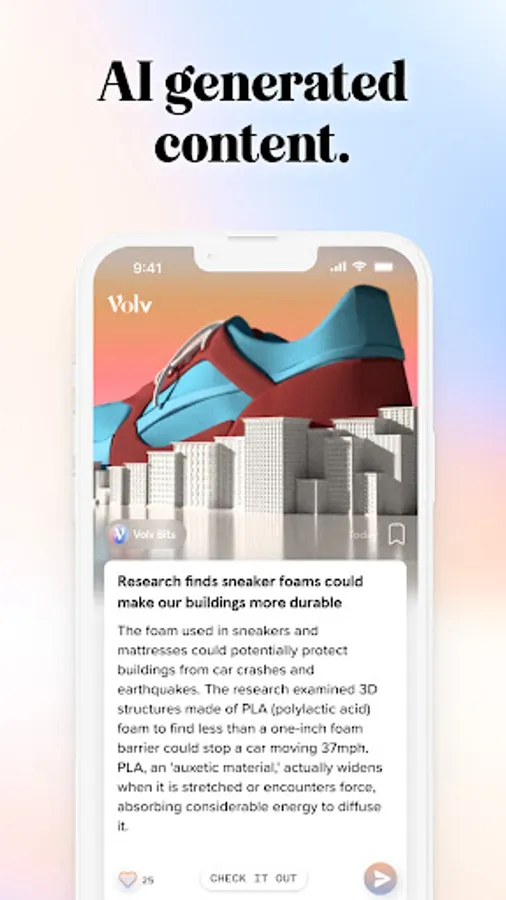 The anti-social media app. Volv is an AI powered news app that curates interesting content across cyberspace and delivers it to you in 9-second articles using AI.