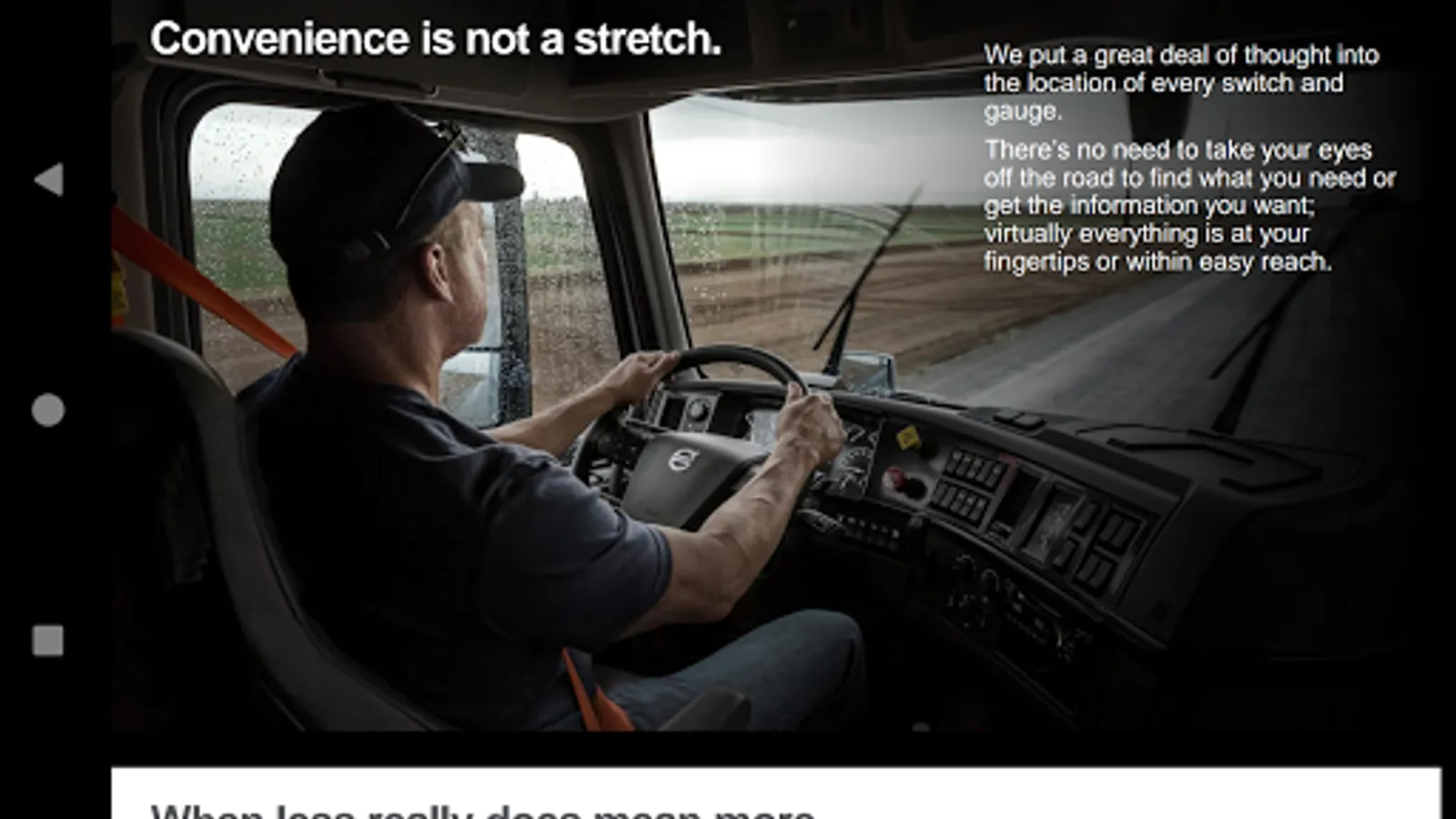 The Volvo Trucks Sales Master is an application for Volvo Trucks sales people, dealers and their staff only. The purpose of the tool is to improve different kind of sale situations. Sales Master is a library of sales material like brochures, images, videos and other digital content. It covers the Canada & United States markets.