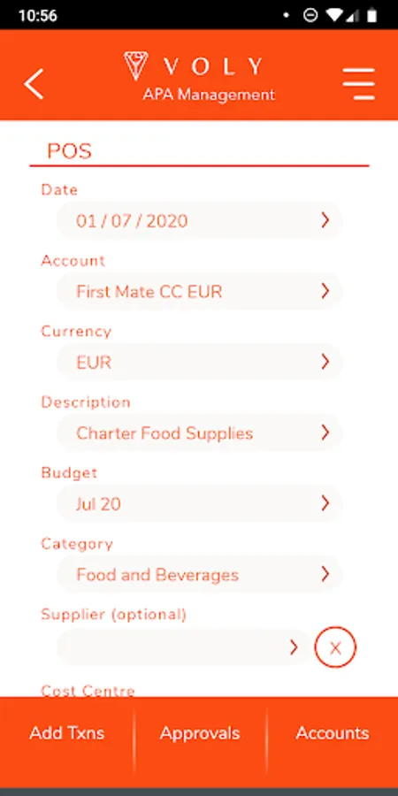 Record charter expenditure on the go. Using the Voly app, crew can view cash and card balances and record APA transactions on the go, in real-time. By using our simple cost centre function you can assign costs by charter, this allows for clear segregation of expenses on back to back charters, eliminating any issues with cross over.