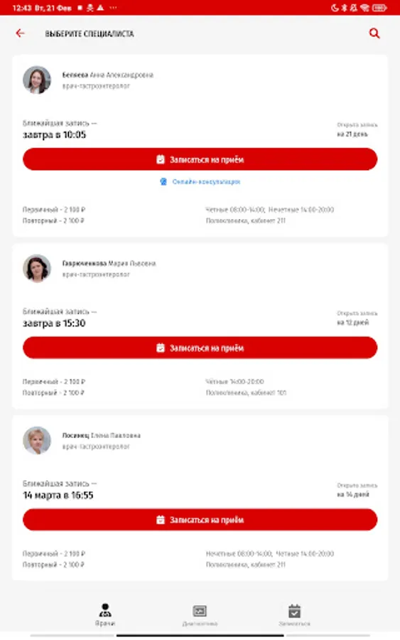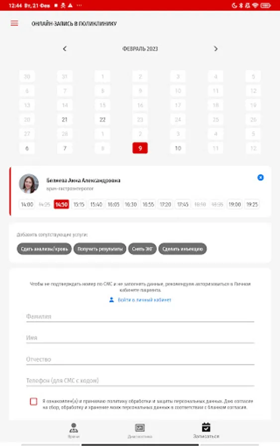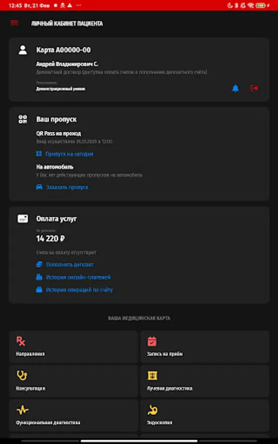 Making an appointment for a doctor's consultation and diagnostics with a unique function of planning a visit to several specialists in one day. Online order of a pass for a car, online payment, electronic QR pass to the territory.