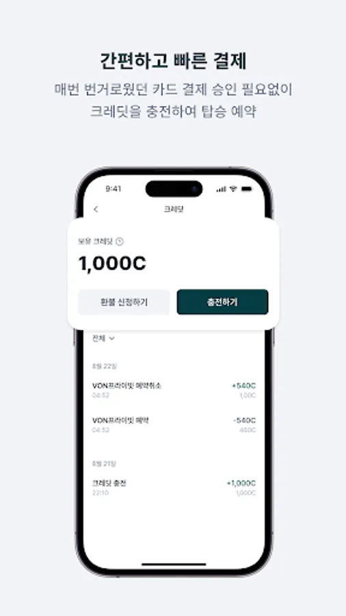 - Reserve your ride by recharging credit without the need for cumbersome card payment approval every time.