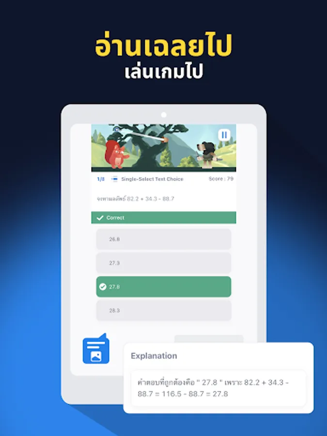 Register or be our guest by clicking 'Continue as guest' and instantly enjoy exploring Vonder's Challenges via 'Vonder Go!', a learning game that motivates players to concentrate more on their lesson with an exhilarating match between a hero and naughty villains. Choose the best answer and see whether the hero will attack or be attacked.
