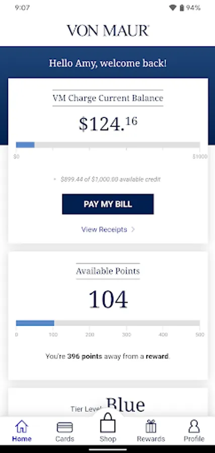 · Manage your Rewards – view Von Maur Rewards points and rewards, redeem points, and activate bonus point offers