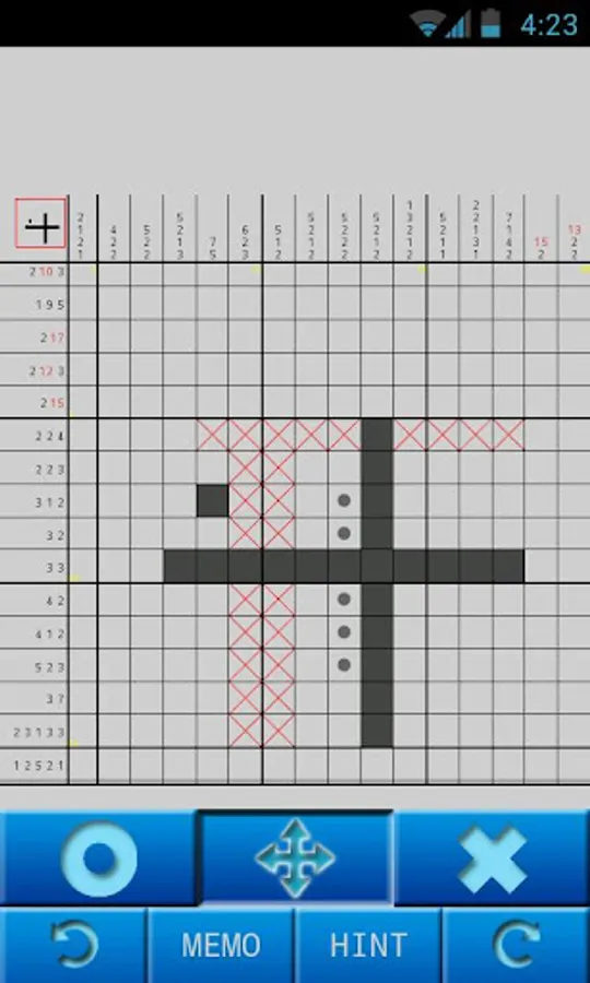 Using a pencil-shaped memo button marked fields without destroying the game can be placed.