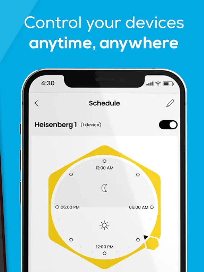Turn basic routinized switching into afterthoughts by scheduling your device. You can also set a time for grouped devices and enjoy the perks at a specific time with one simple command.