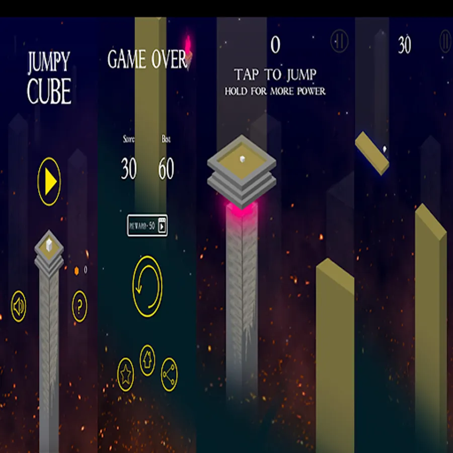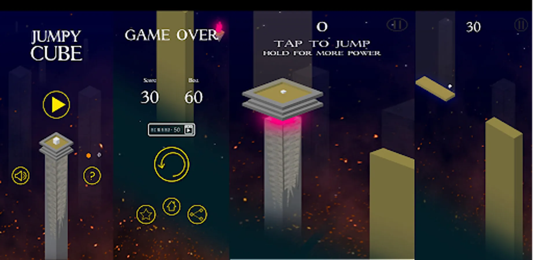 Game Jumping with night background. The game collects scores by jumping boxes from pole to pole. The highest level of the game is one that can pass through many poles. You have to step by step from the easiest jumps to the hardest