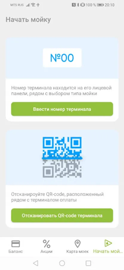 Scan the QR code or select the car wash on the card and pay in a few taps.