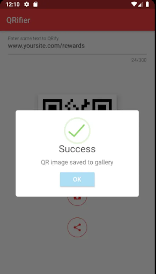You can create your own QR codes and share them with others via whatsapp or any place. You can also save QR codes as an image to your phone's gallery.
