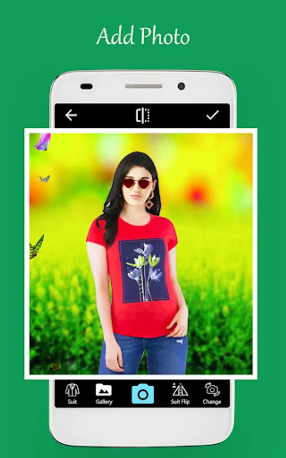 Instantly take a picture by clicking the T shirt of your choice which in turn opens you up the camera upon which the selected T shirt is placed so that you can click your image in accordance to the suit for a better sync. If not import the image from the gallery, try adjusting it to the suit manually.