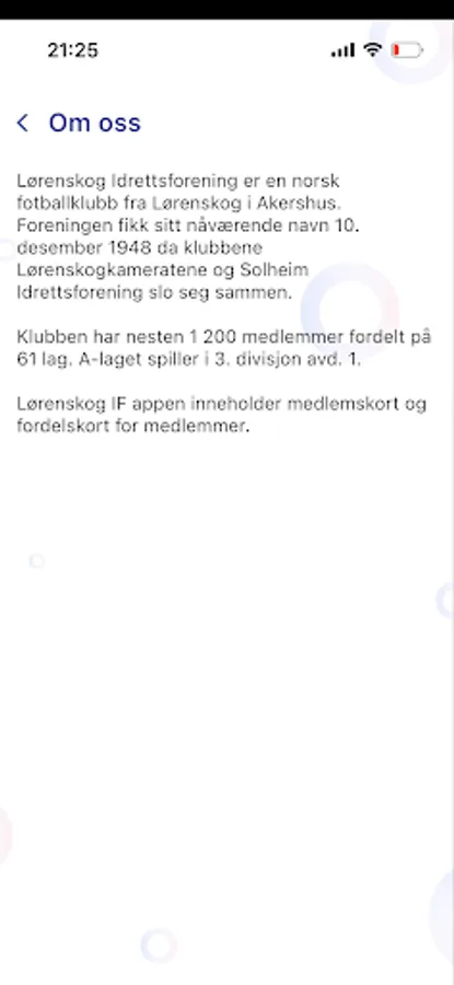 Member app for Lørenskog Idrettsforening. Member app that can be used for access to Lørenskog e-sports center. Here you will find membership cards, discount cards and membership cards that Lørenskog Idrettsforening members can use. You must be a member and registered with the club to be able to use the solution.