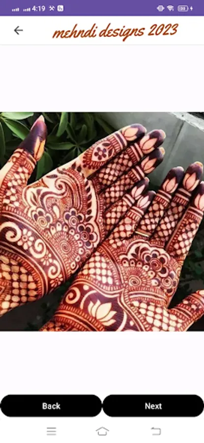 User-Friendly Interface: Our app is intuitively designed, making it easy for users of all levels to browse and select their favorite mehndi designs. Whether you're a beginner or an expert, you'll find our app a breeze to navigate.