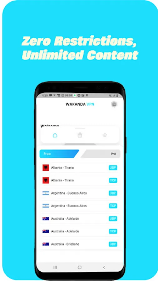 Surf the web anonymously and securely with WAKANDA VPN app. If you are a web surfer, WAKANDA VPN is for you. For an uninterrupted, high speed browsing and zero logs, this app allows online activity to be private. Facilitate lightning fast speed, WAKANDA VPN is compatible with android device Protect your privacy, keeping you safe from third party tracking, unblock geographically restricted sites, one click to connect VPN, encrypt the internet traffic, and more with WAKANDA VPN app. Unblock and access streaming videos, movies, series, matches, shows, and more without buffering. The super fast WAKANDA VPN app is ideal for streaming games. You can also change your IP address to wherever you want with WAKANDA VPN app. With a set of resourceful features, WAKANDA VPN app comes with a modern functionalities.